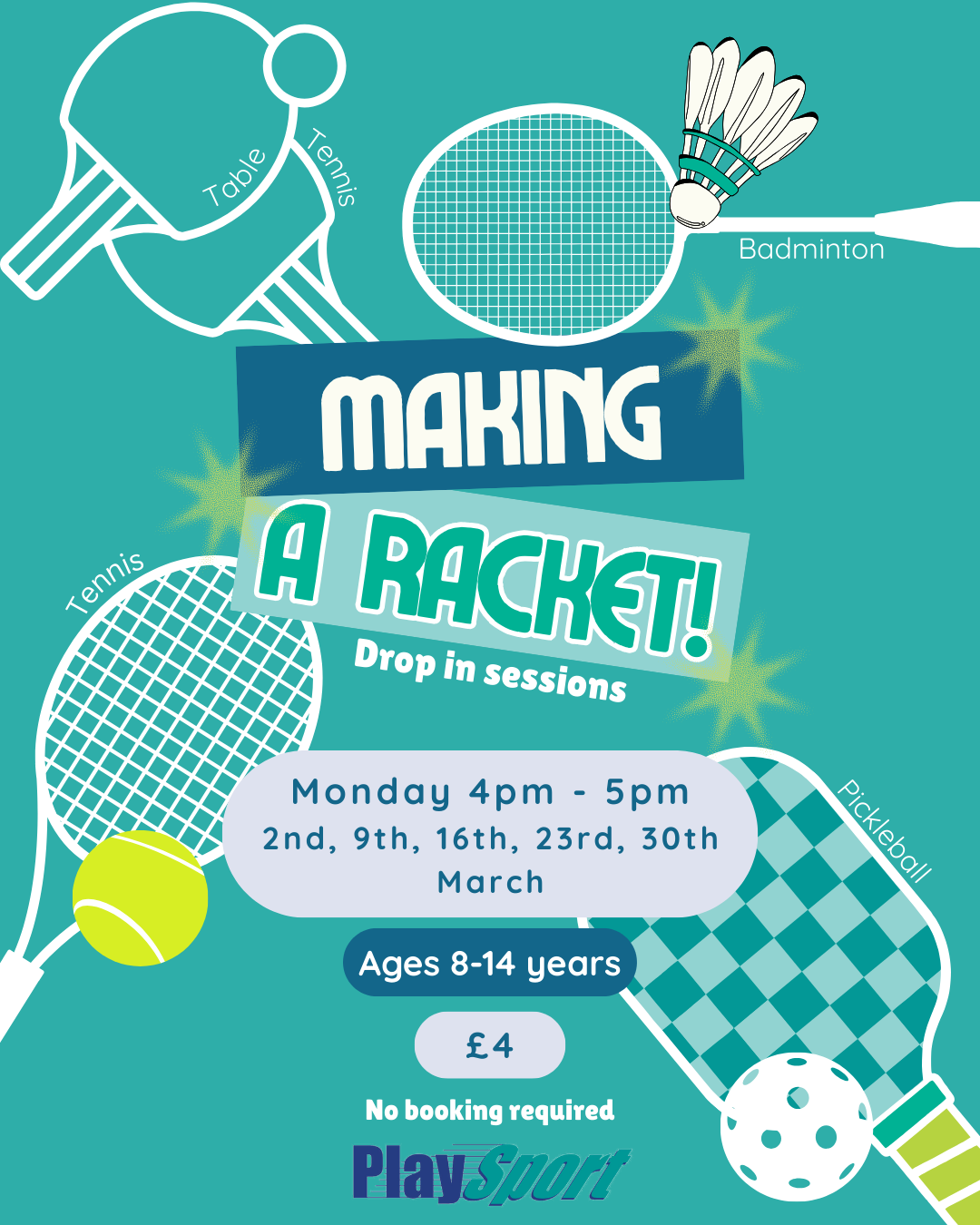 Making A Racket is a perfect opportunity to come yourself, or in a small group to play and maybe even try to beat the staff. There is no booking required for this class, and you will be able to pay at reception on the day.